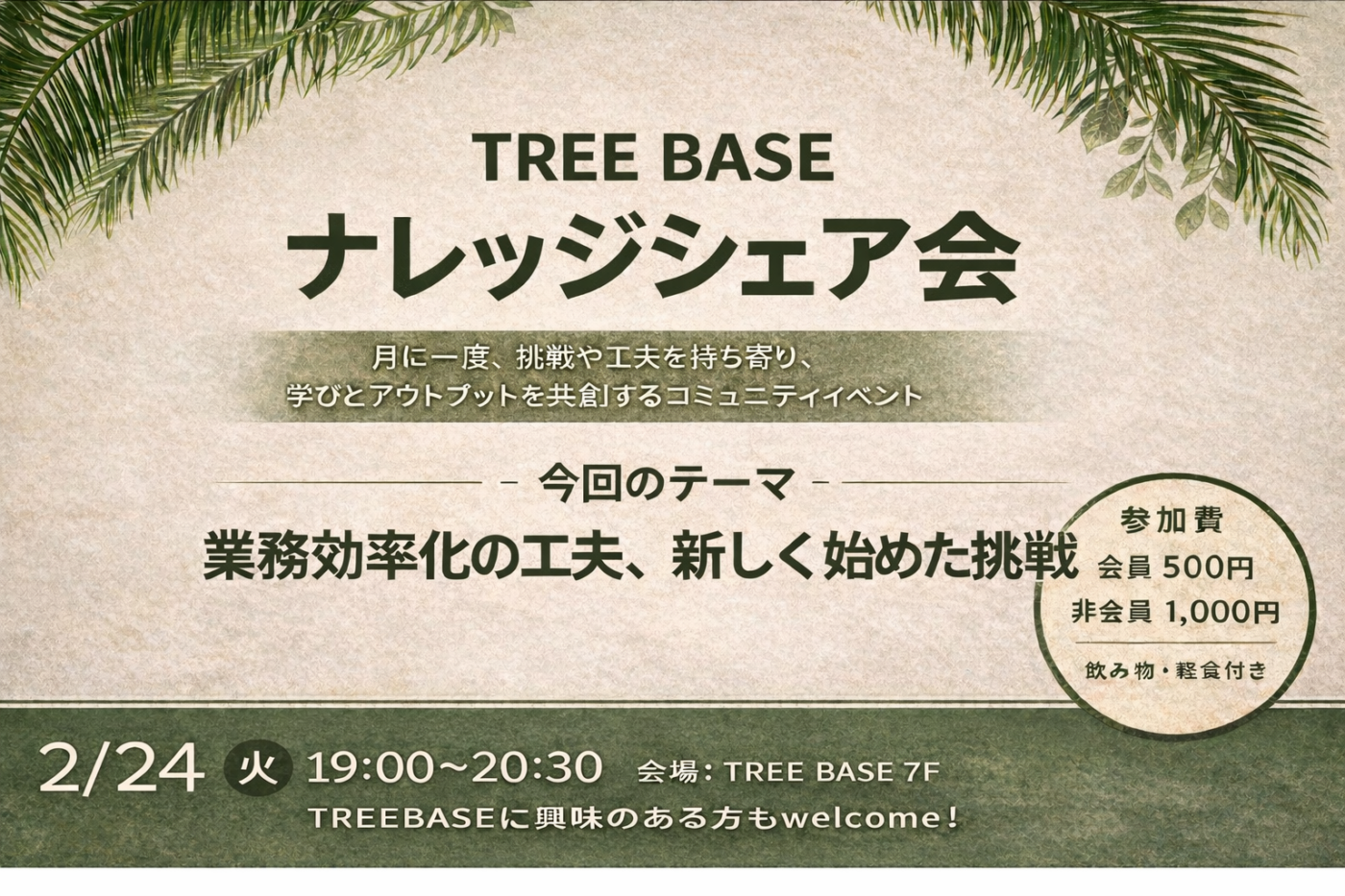 シェアオフィスとオープンイノベーションが融合した共創の場で、木の根から葉へとエネルギーが広がりアイデアやプロジェクトが花を咲かせる。若者やフロンティアスピリッツを持つ人々が、活動と交流を通じて小さなアウトプットを促進し、実施していくイベントで大きなうねりを創る。そんな場所を目指しています。