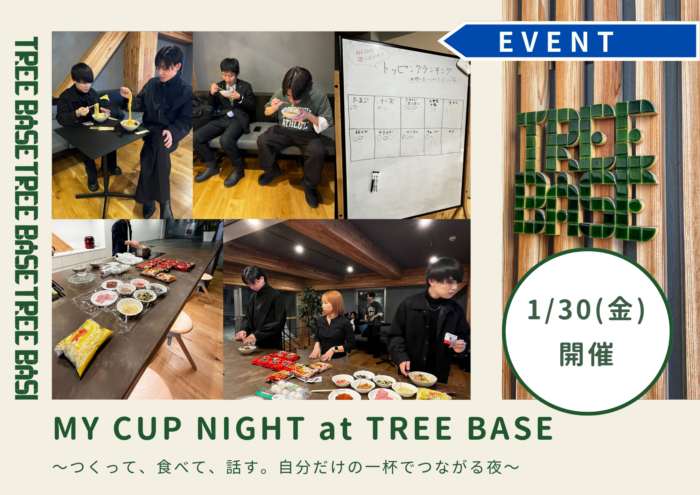 1月30日の金曜日、札幌シェアオフィス「TREE BASE」にて交流イベントを開催しました。 今回のテーマは 「MY CUP NIGHT」。 学びのセミナーとは少し趣向を変え、”一緒につくる” という体験を通して、肩書きに縛られないフラットな繋がりを楽しむ夜となりました。
