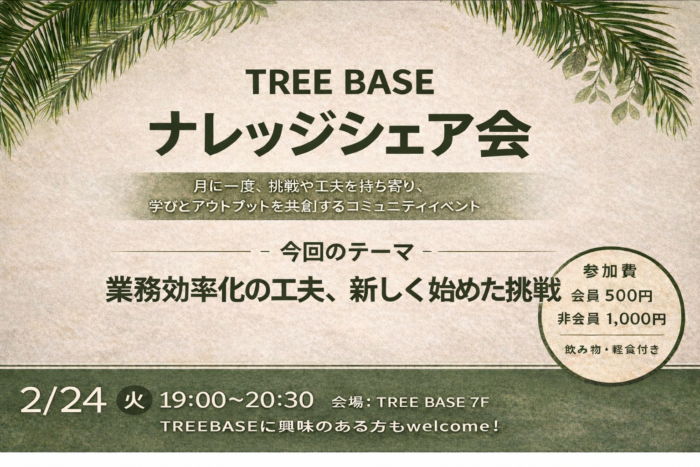 今後もTREE BASEでは、人と人がつながることで新しい価値が生まれる共創拠点として、さまざまなイベントやコミュニティ活動を展開してまいります。